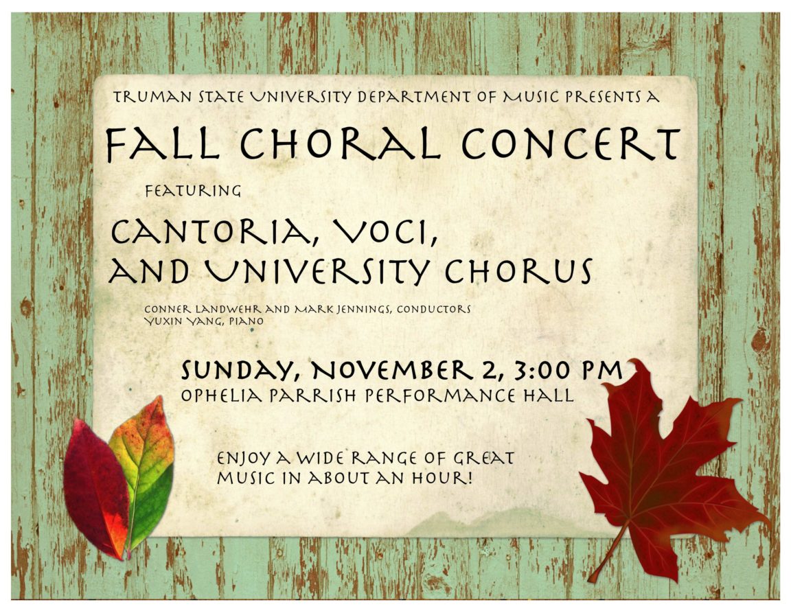 Please join us for the 2025 Fall Concert! Singing Opportunities at Truman Solo Performance Choral Ensembles A Cappella